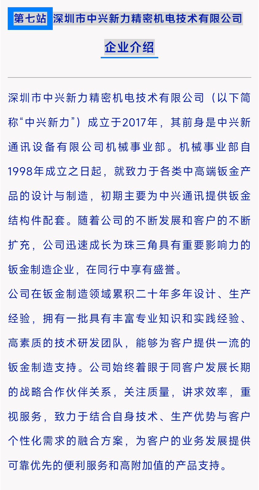 為深化會員間的交流合作,共同推動鈑金行業的創新與發展,深鈑協于2024年8月31日成功舉辦了2023—2024年度鈑金行業《優秀企業互動活動》第七期。本期活動走進了深圳市中興新力精密機電技術有限公司(簡稱“中興新力”),通過實地參觀和深入交流,共同探尋行業發展的新路徑。來自近60家會員企業的80多位精英代表齊聚一堂,共赴“中興新力”新廠區,開啟了一場深度交流與合作的非凡之旅。